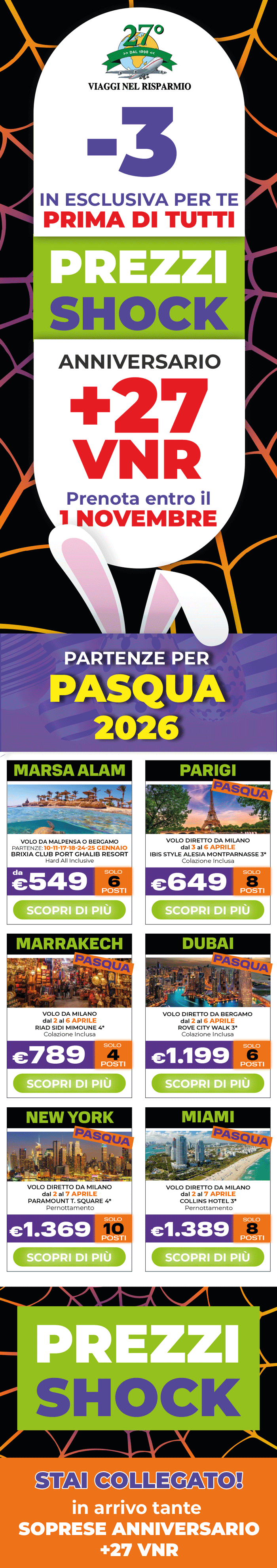 ATTENZIONE: Questa email ed i suoi eventuali allegati contengono informazioni confidenziali indirizzate solamente agli indirizzi di posta selezionati. Le informazioni contenute non dovranno essere dunque divulgate in ottemperanza con le leggi vigenti. Qualora questa email raggiunga un destinatario sconosciuto si prega di comunicare l'errore al seguente indirizzo: cornate@viagginelrisparmio.com. Se non vuoi più ricevere questa newsletter Clicca qui