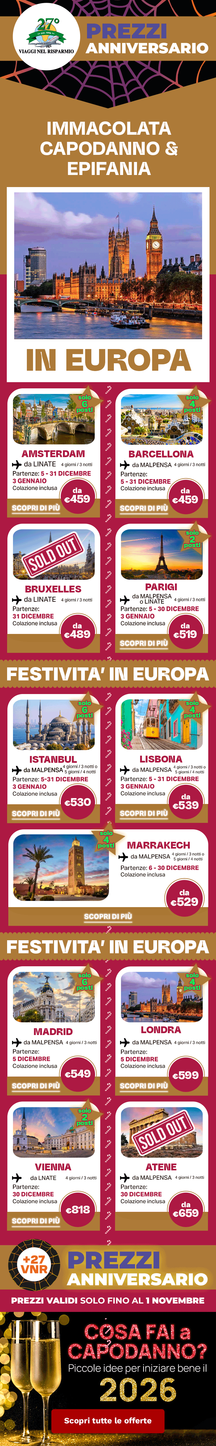 ATTENZIONE: Questa email ed i suoi eventuali allegati contengono informazioni confidenziali indirizzate solamente agli indirizzi di posta selezionati. Le informazioni contenute non dovranno essere dunque divulgate in ottemperanza con le leggi vigenti. Qualora questa email raggiunga un destinatario sconosciuto si prega di comunicare l'errore al seguente indirizzo: cornate@viagginelrisparmio.com. Se non vuoi più ricevere questa newsletter Clicca qui