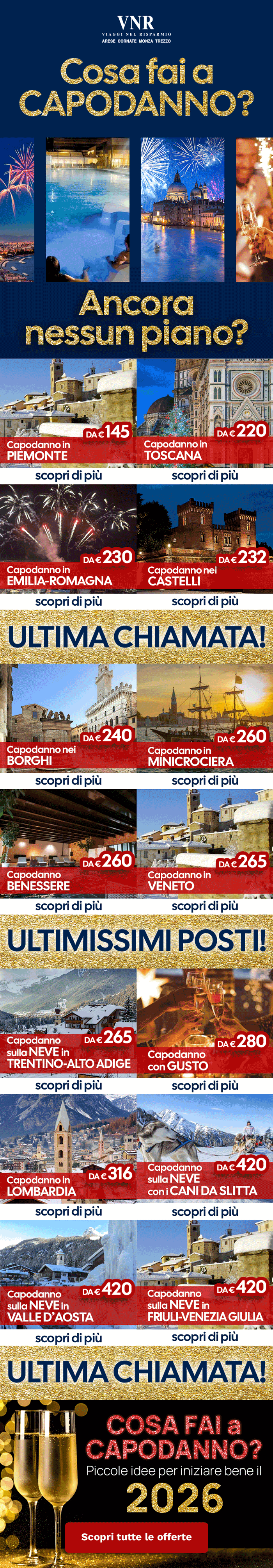 ATTENZIONE: Questa email ed i suoi eventuali allegati contengono informazioni confidenziali indirizzate solamente agli indirizzi di posta selezionati. Le informazioni contenute non dovranno essere dunque divulgate in ottemperanza con le leggi vigenti. Qualora questa email raggiunga un destinatario sconosciuto si prega di comunicare l'errore al seguente indirizzo: cornate@viagginelrisparmio.com. Se non vuoi più ricevere questa newsletter Clicca qui
